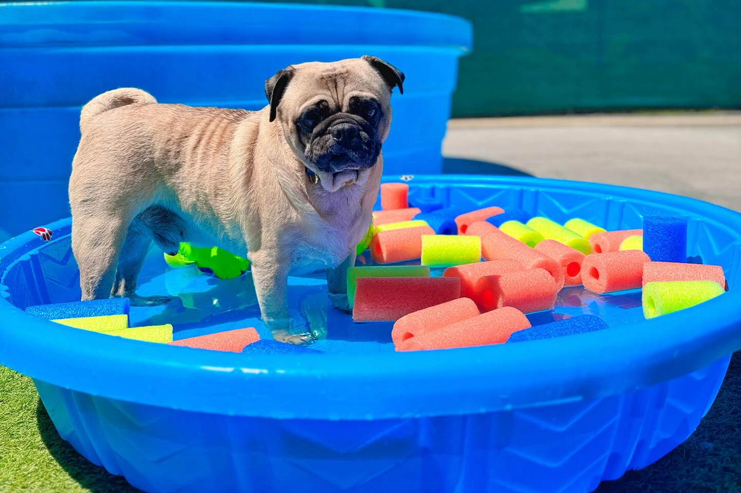 At Fit & Go Pets, dogs enjoy open play areas with ball pits, splash zones, and interactive games that build social skills and confidence in Miami.