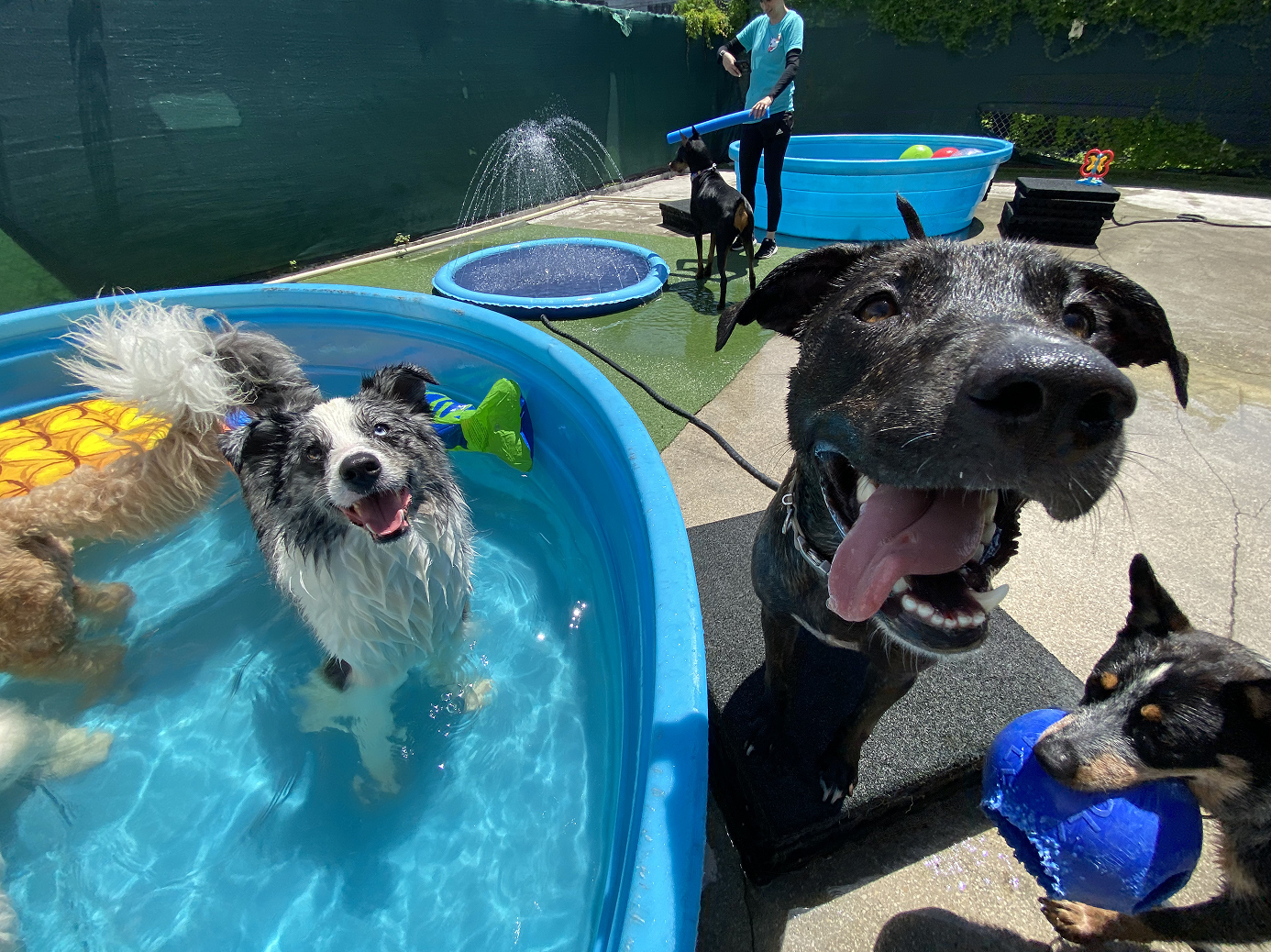 Rest assured that our caring and trained team supervises the dogs at all times, ensuring their safety and well-being as they play, socialize, and have a great time with us.
